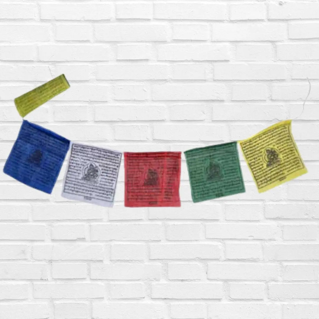 Le Bandiere Tibetane sono piccole bandierine di preghiera in stoffa colorata che vengono solitamente utilizzate per onorare i luoghi mediante la forza del vento che distribuisce in tutto il territorio le benedizioni contenute in esse.